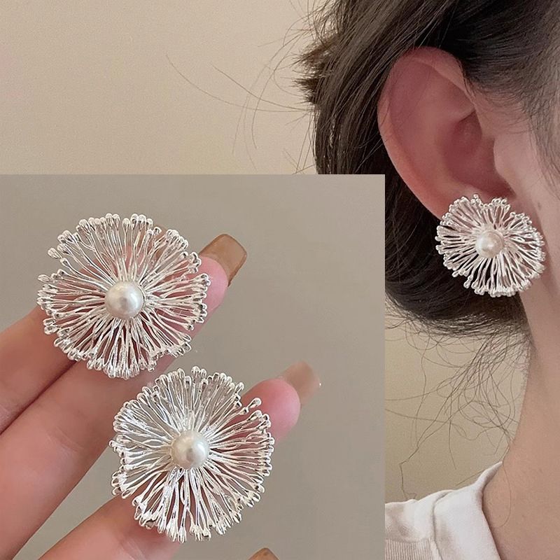 PANJBJ 925 Sterling Silver Flower Studs Earrings For Women Zircon Retro Sweet Matte Finish Birthday Jewelry Gift Dropshipping
