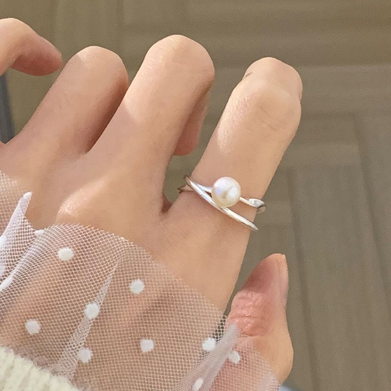 PANJBJ 925 Sterling Silver Pearl Irregular Ring for Women Shell Overlapping Hollow Sweet Design Jewelry Gift Dropshipping