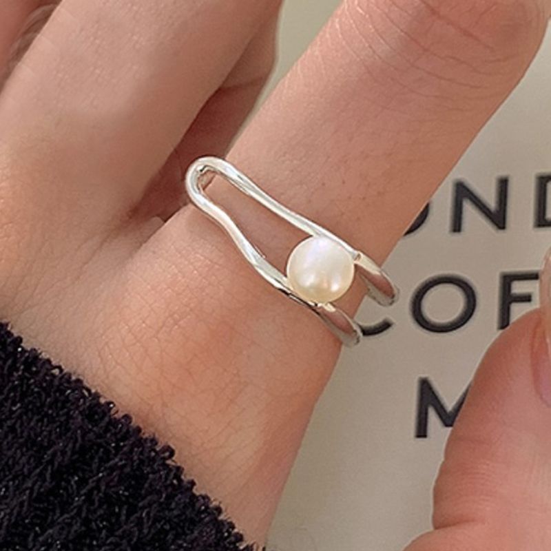 PANJBJ 925 Sterling Silver Pearl Irregular Ring for Women Shell Overlapping Hollow Sweet Design Jewelry Gift Dropshipping