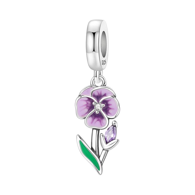 PANPOKI 925 Sterling Silver Purple Iris Flower Pendants Original Bracelet Charms Jewelry Party Beads DIY Trendy Gifts