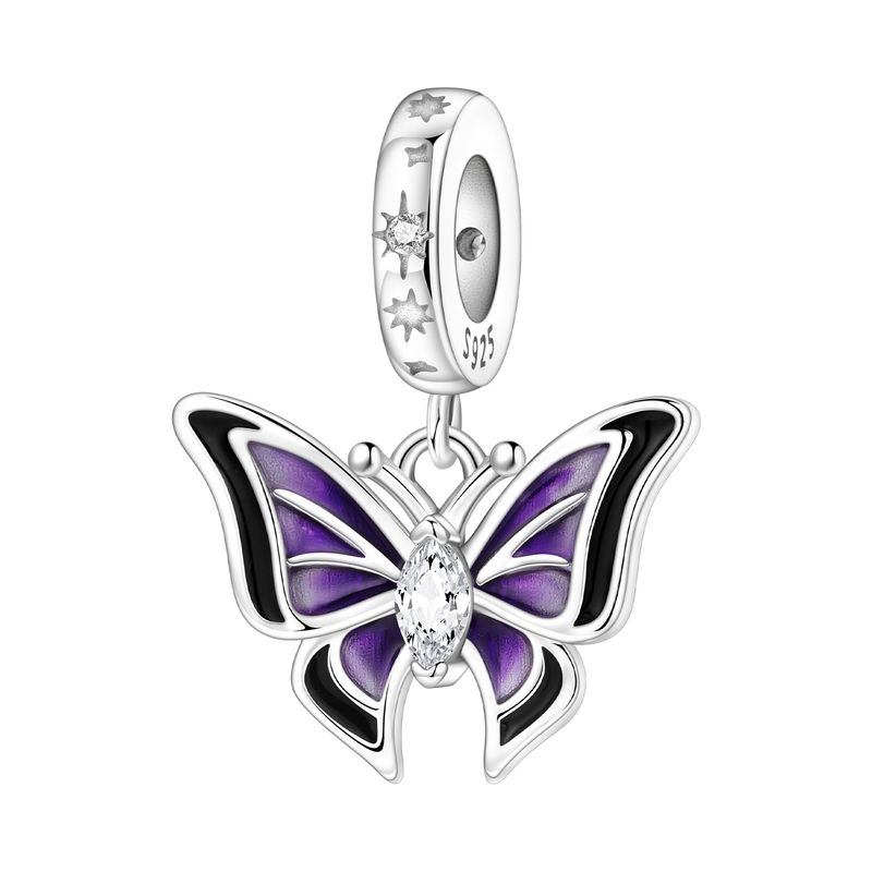 PANPOKI 925 Sterling Silver Purple Iris Flower Pendants Original Bracelet Charms Jewelry Party Beads DIY Trendy Gifts