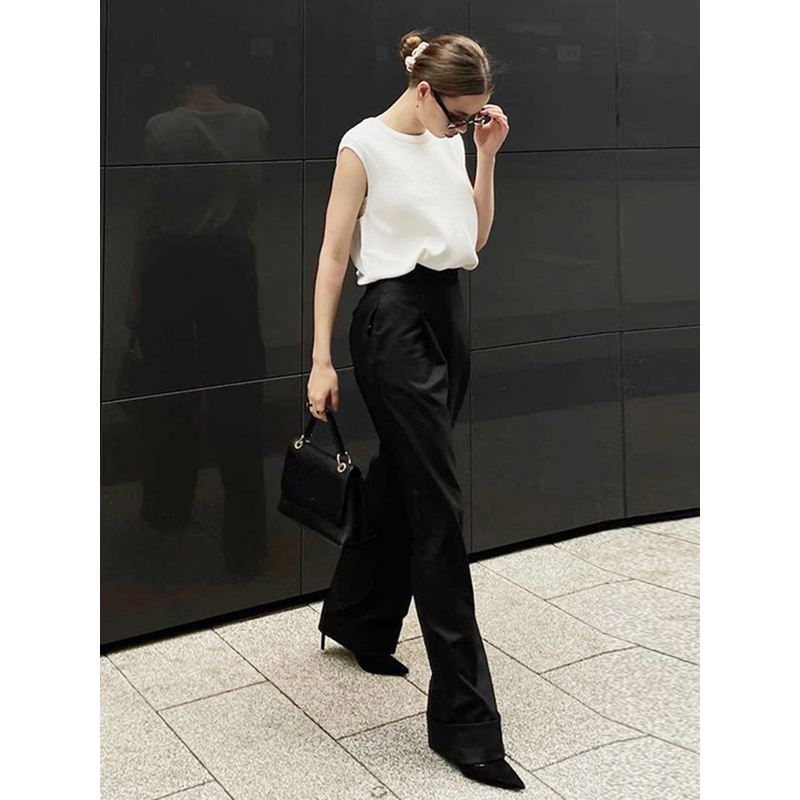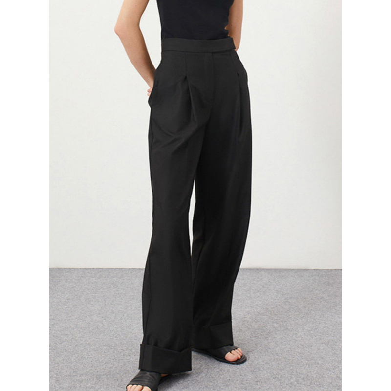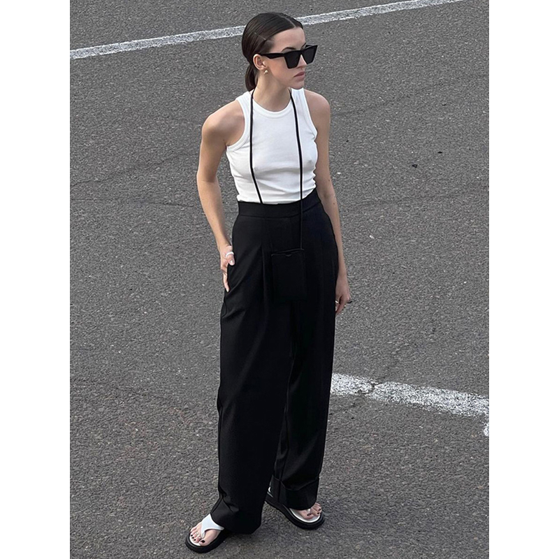 Parc Fee Fashion Loose Black Office Women's Pants 2025 Casual High Waist Wide Trousers Elegant Classic Full Length Pants Female