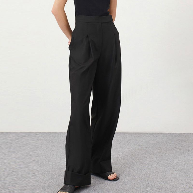 Parc Fee Fashion Loose Black Office Women's Pants 2025 Casual High Waist Wide Trousers Elegant Classic Full Length Pants Female