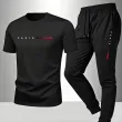PARIS Men s casual suit spring and summer new style letter print American trend sports fashion short sleeved pants two-piece set
