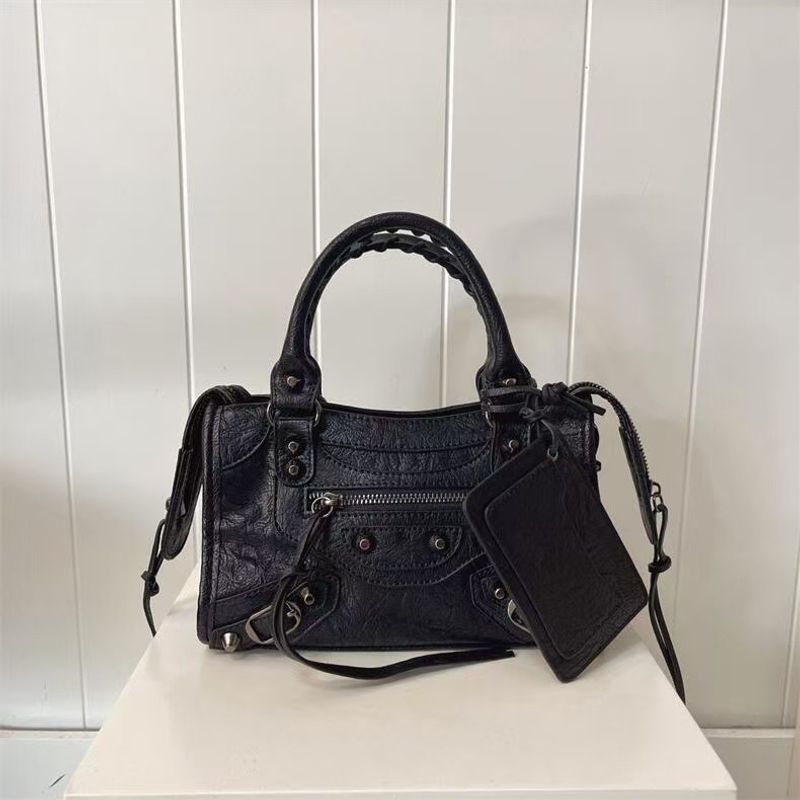 This Parisian rivet motorcycle bag exudes urban simplicity, perfect for the modern urbanite seeking a touch of vintage flair.