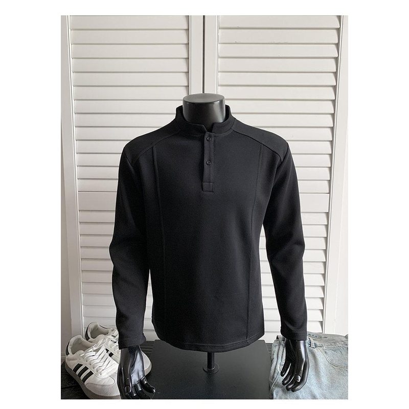 Patchwork Stand-up Collar Sweater Shoulder Polo Shirt Collar Long Sleeve Men Black XL