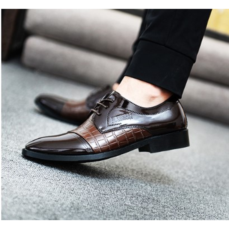 pattern autumn men's pointed business dress shoes leather men's shoes single shoes shoes men Brown 39