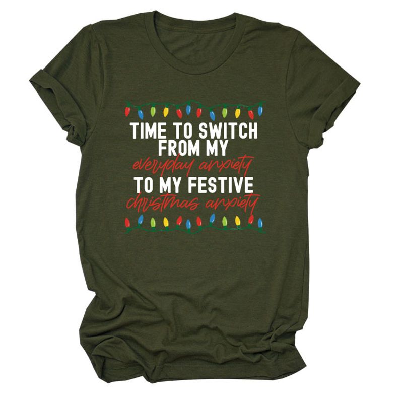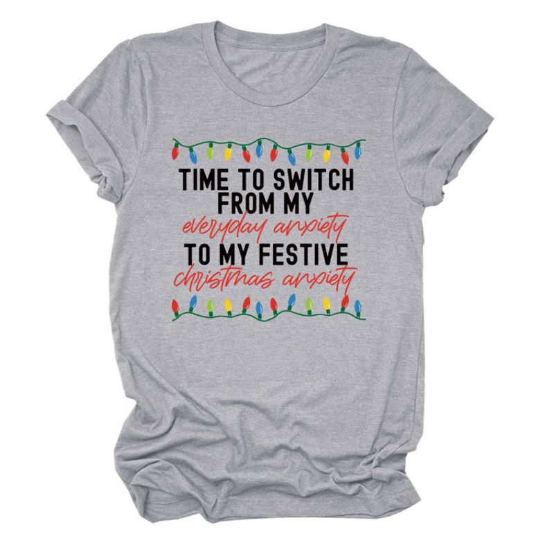 Pattern Printing Casual Short-sleeved T-shirt Women's Tops Black whitecolorV 3XL