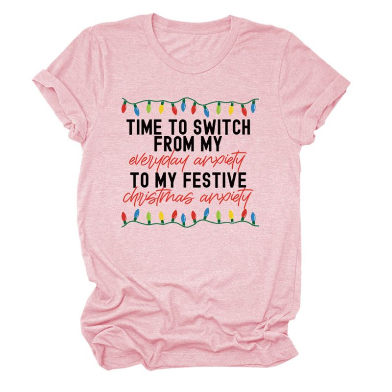 Pattern Printing Casual Short-sleeved T-shirt Women's Tops Pink black color XL