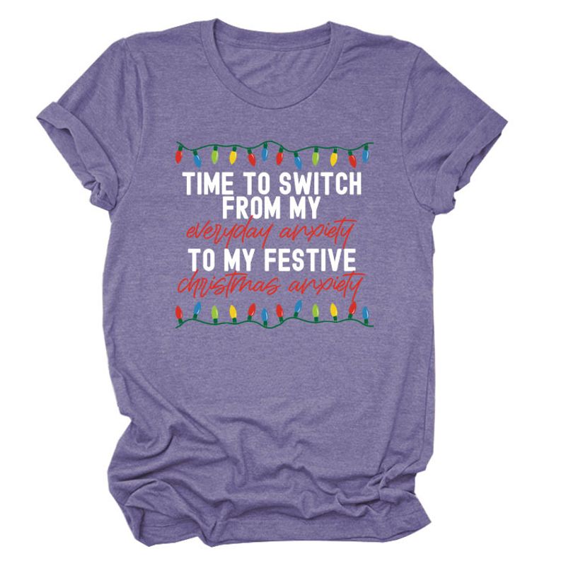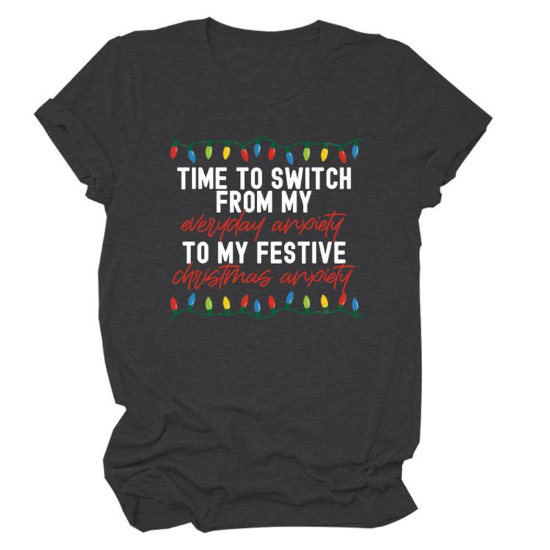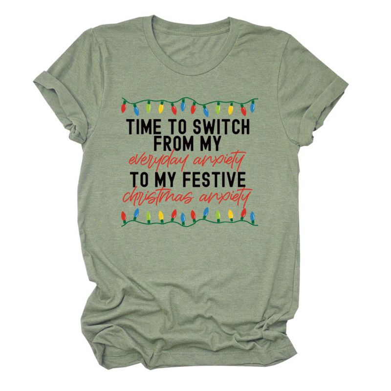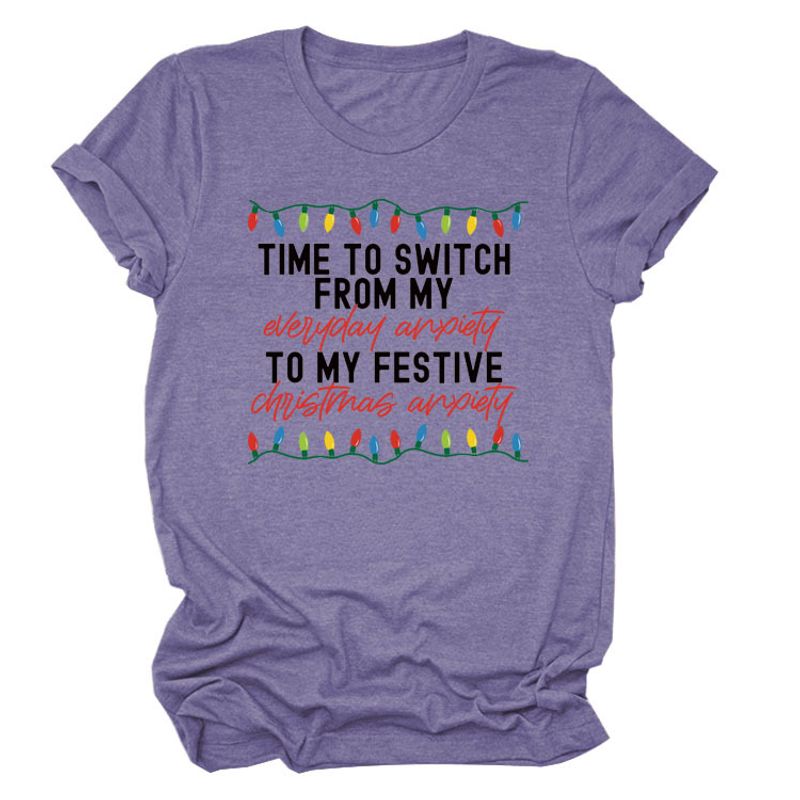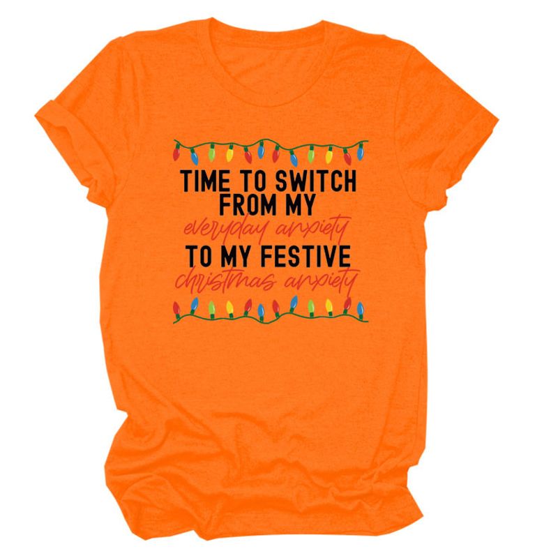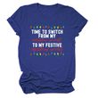 Pattern Printing Casual Short-sleeved T-shirt Women's Tops Red white color 2XL