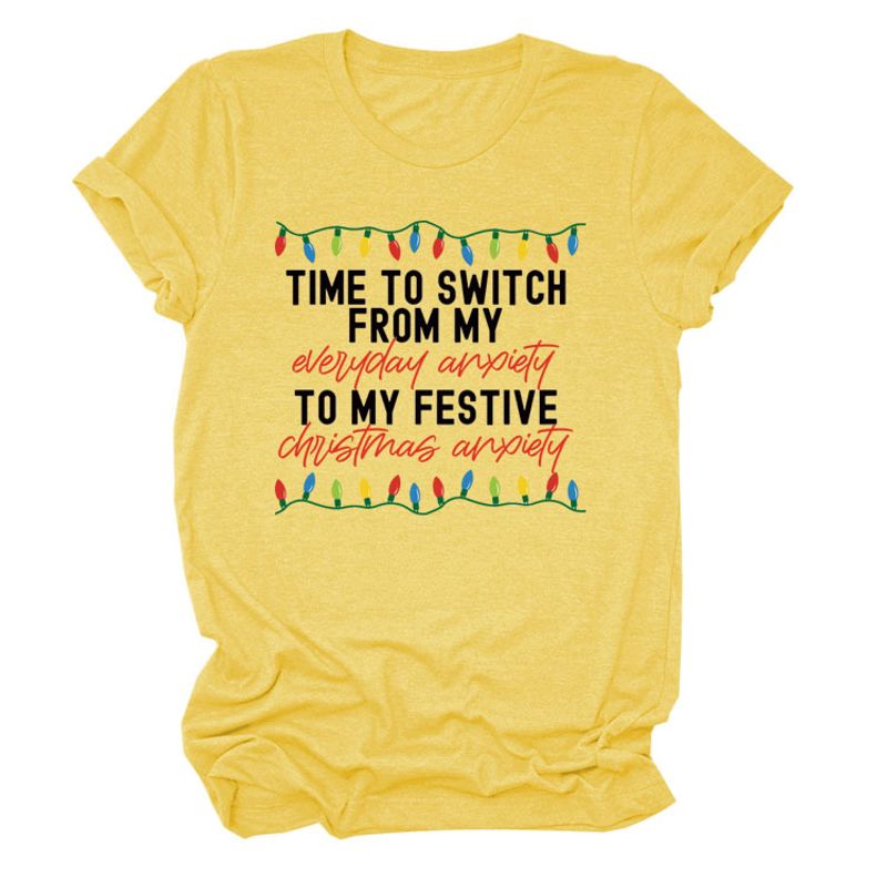 Pattern Printing Casual Short-sleeved T-shirt Women's Tops Yellow black color XL