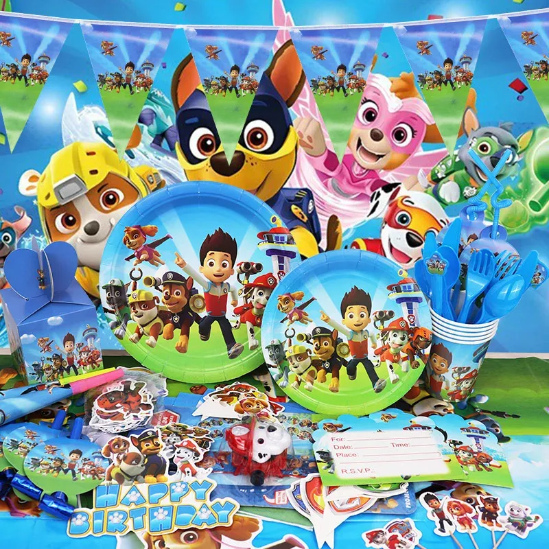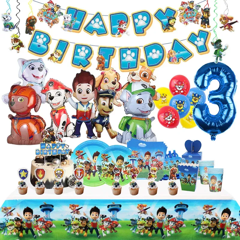 PAW Patrol Birthday Party Decoration Chase Foil Latex Balloon Kids Event Supplies Toy Watch Disposable Tableware Banner Backdrop
