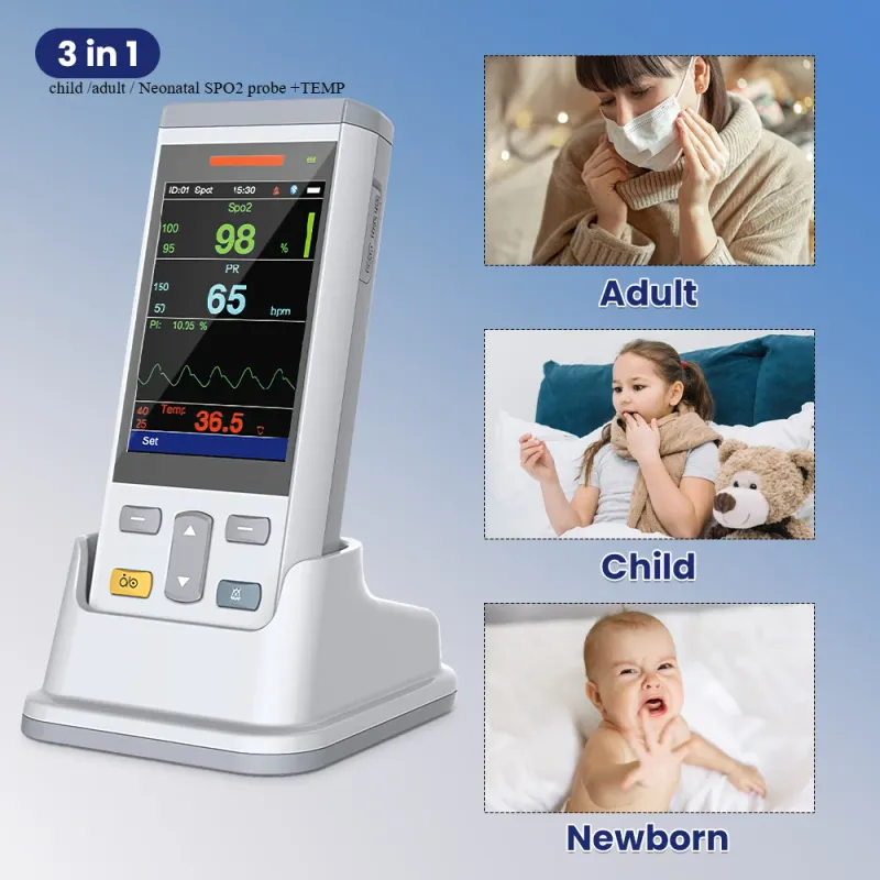 PC100S Handheld Patient Monitor for Human 2 Parameter SpO2 TEMP Vital Sign Monitoring