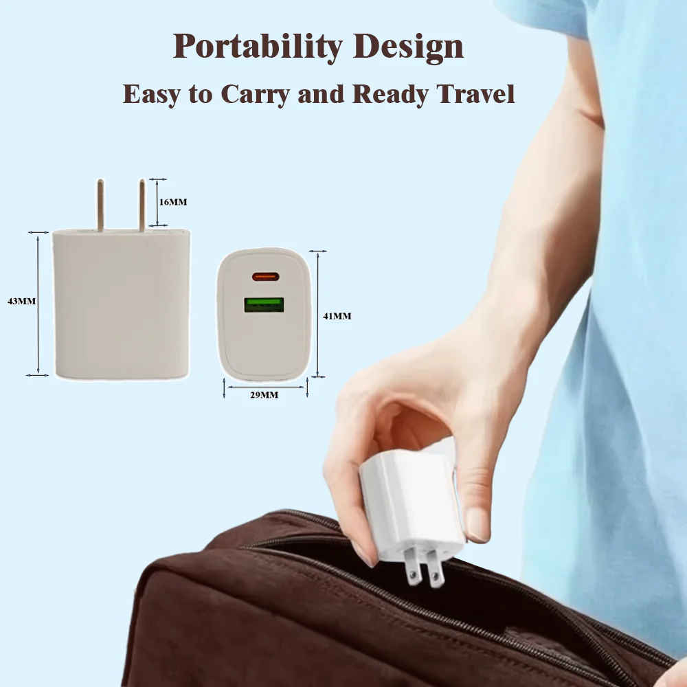 PD20W 5V USB Charger Dual Port - Type-C PD Fast Charging Adapter Compatible with iPhone, Samsung, Xiaomi & Most Smartphones