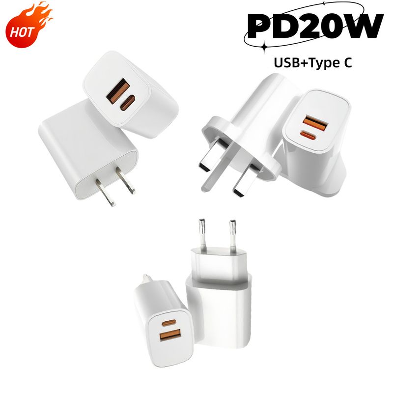 PD20W 5V USB Charger Dual Port - Type-C PD Fast Charging Adapter Compatible with iPhone, Samsung, Xiaomi & Most Smartphones