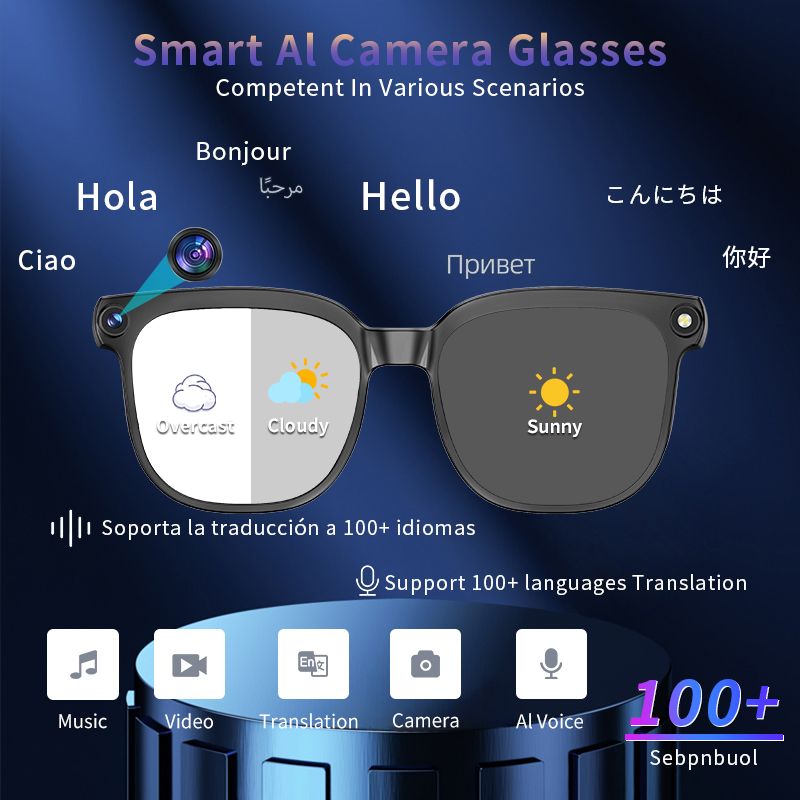 PEJE AI Smart Glasses with Camera, 1080P HD Video Recording Glasses, AI Assistant (ChatGPT/Doubao), Real-Time Translation