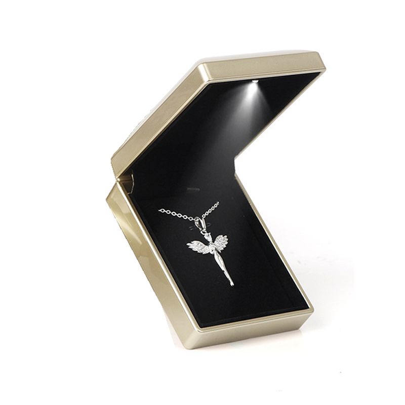 Pendant Necklace Box with LED Light Square Shaped Box Velvet Jewelry Gift Boxes LED Necklace Box for Engagement Proposal