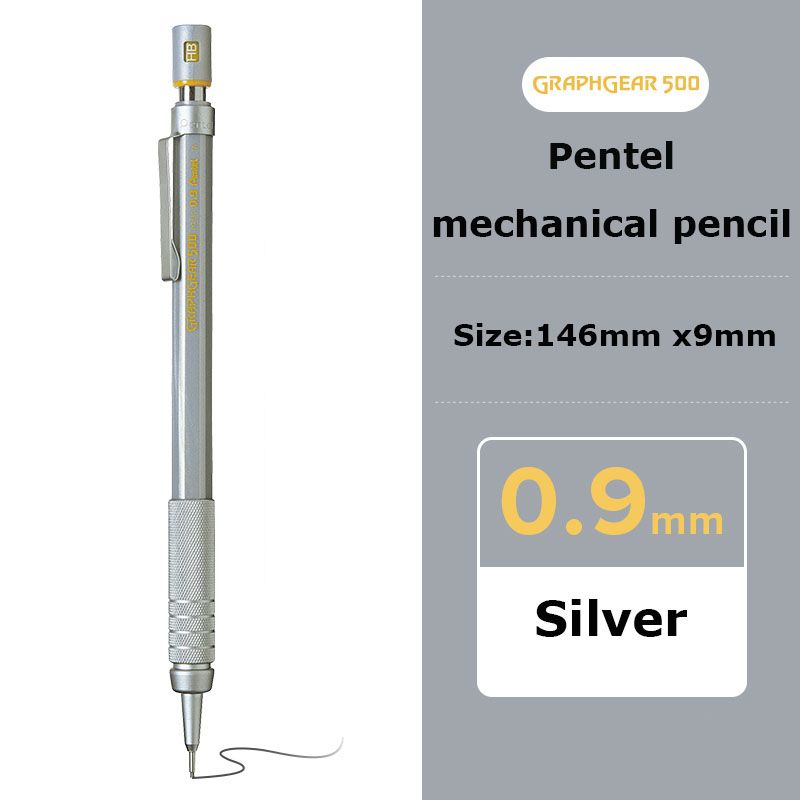 Pentel Graphgear 500 Drafting Mechanical Pencil Japan Stationery 0.3/0.5/0.7/0.9MM Drawing Automatic Pencil Build-in Eraser