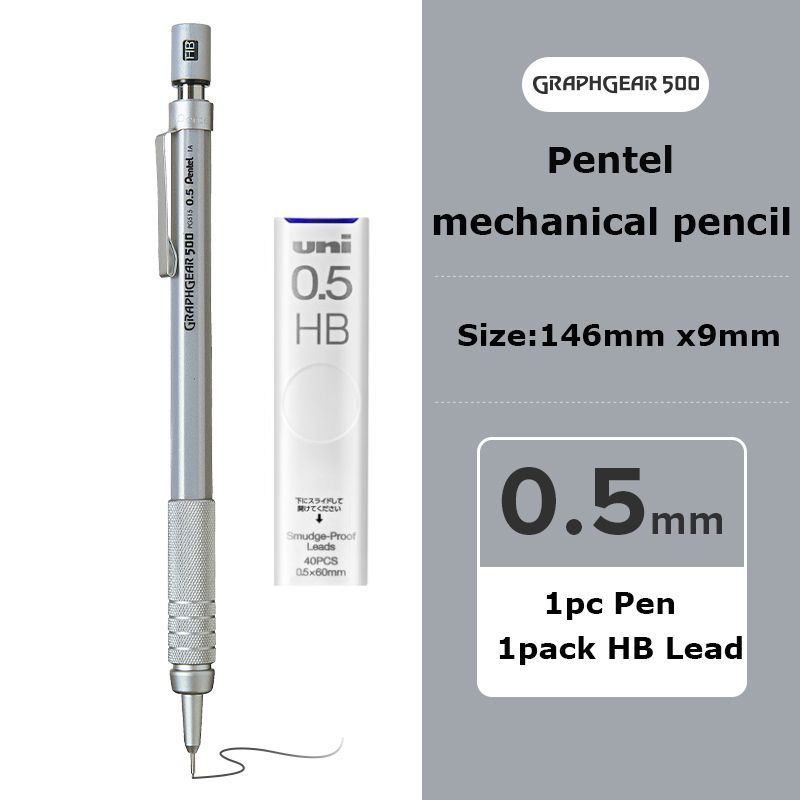 Pentel Graphgear 500 Drafting Mechanical Pencil Japan Stationery 0.3/0.5/0.7/0.9MM Drawing Automatic Pencil Build-in Eraser
