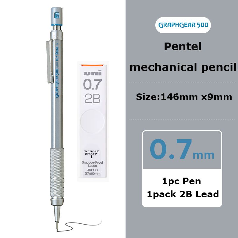 Pentel Graphgear 500 Drafting Mechanical Pencil Japan Stationery 0.3/0.5/0.7/0.9MM Drawing Automatic Pencil Build-in Eraser