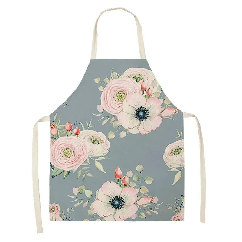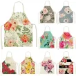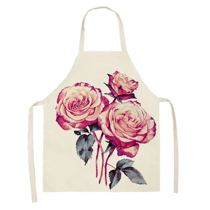 Peony flower linen apron kitchen milk tea shop restaurant work clothes home decoration printed cleaning apron children's bib