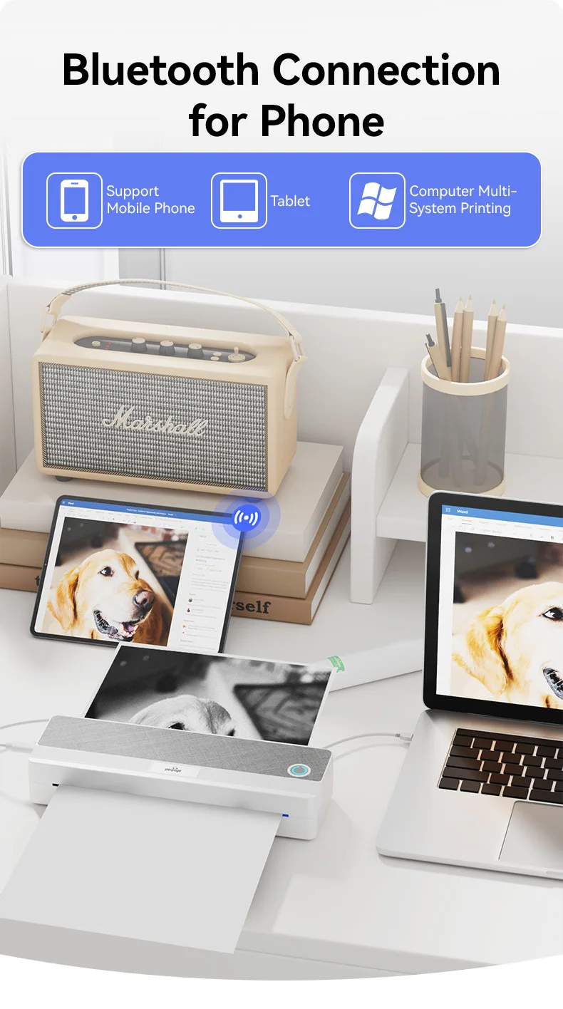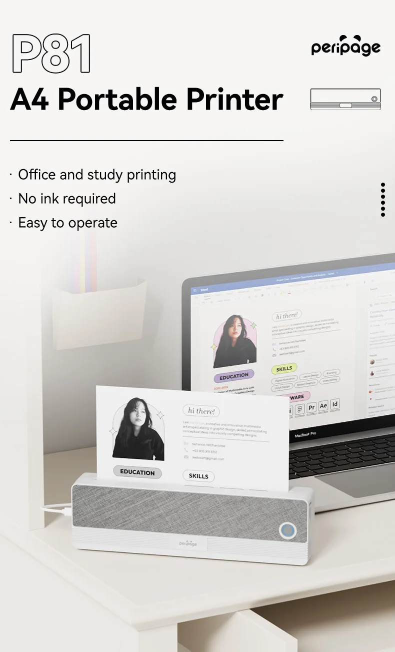 Peripage Portable A4 Thermal Printer No Ink Bluetooth A4 Paper Tattoo Picture HD Printing Mini Printer For Office Study Tattoos