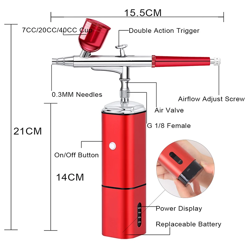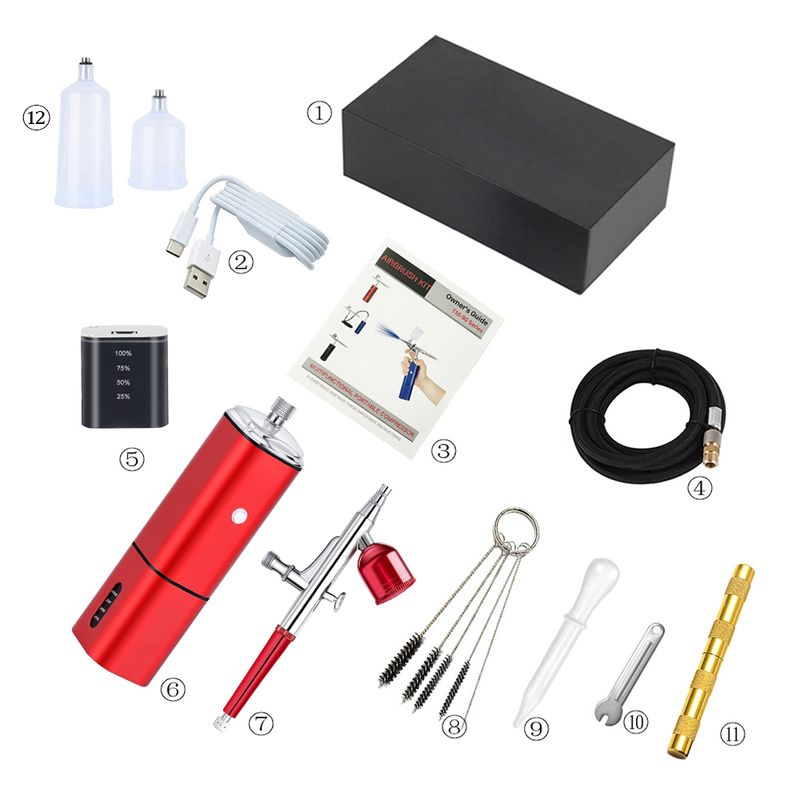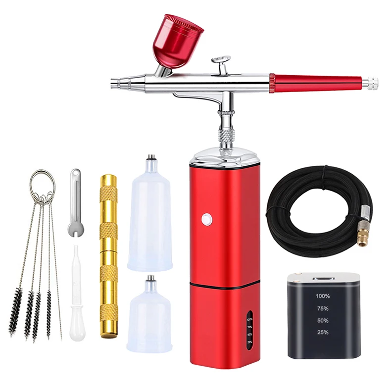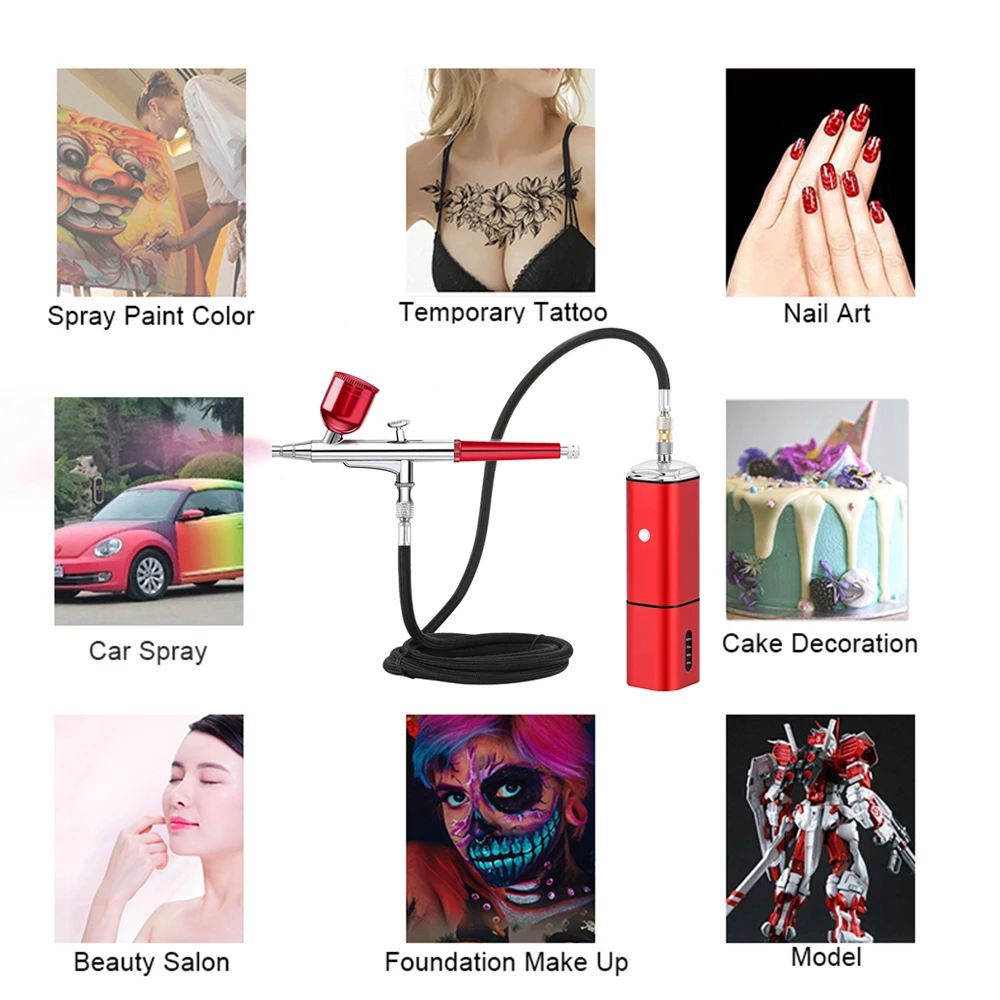 Portable cordless airbrush kit can be used for cake decorating, makeup, nails design, tattoo, model painting, art painting, handicraft and so on.
