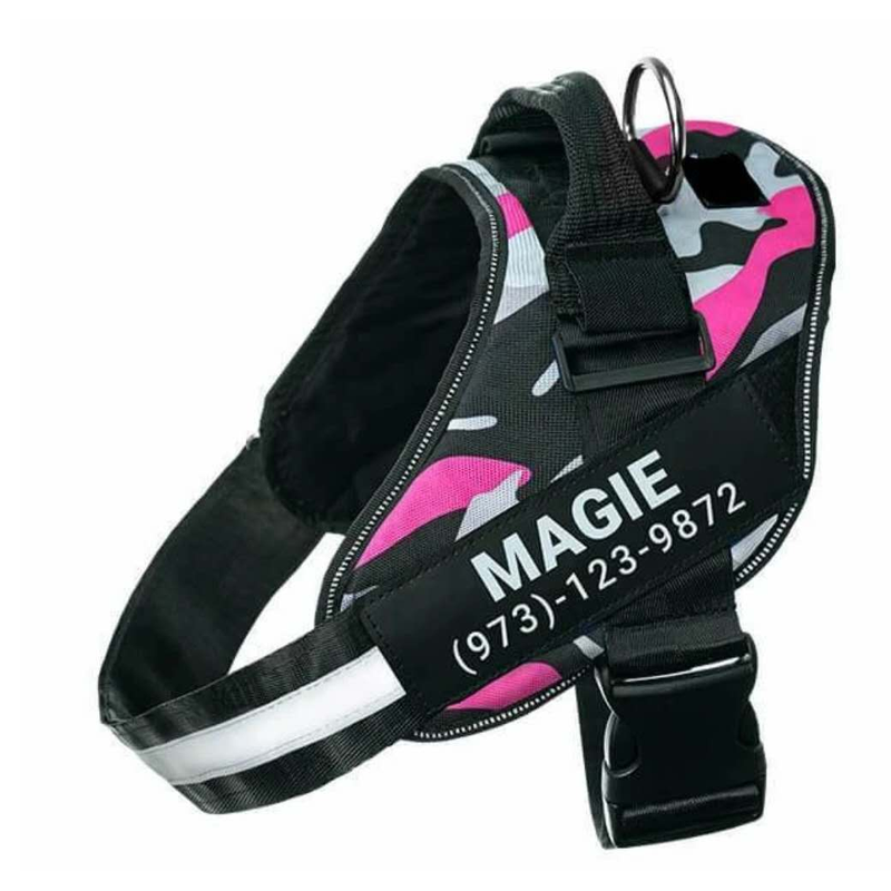 Personalized Custom Reflective Breathable Dog Harness NO PULL Adjustable Pet Harness For Small Large Dog Harness Vest With Patch XL Camouflage Pink