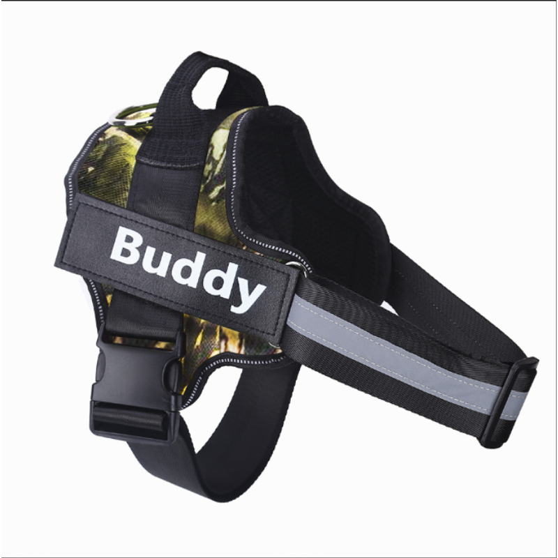 Personalized Dog Harness NO PULL Reflective Breathable Adjustable Pet Harness Vest For Small Large Dog Custom Patch Pet Supplies Camouflage green L