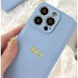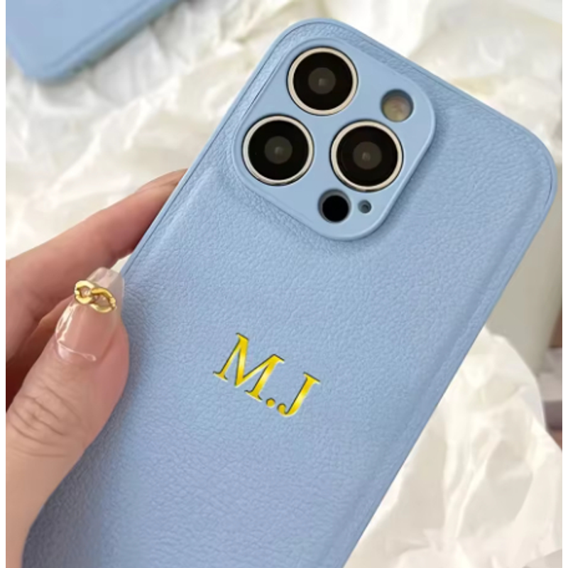 Personalized Gold-embossed Name Luxury Leather Phone Case Blue IPhone 15 Pro Max