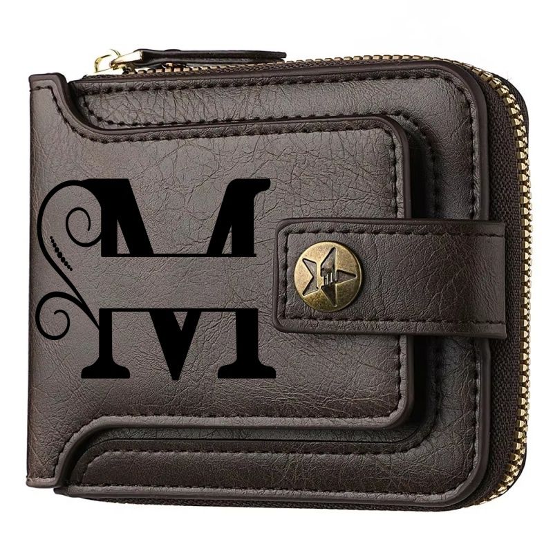 Personalized PU Leather Chain Short Wallet For Man, Engraved Name&Text Bifold Stylish Brown Wallet For Man Valentines Birthday