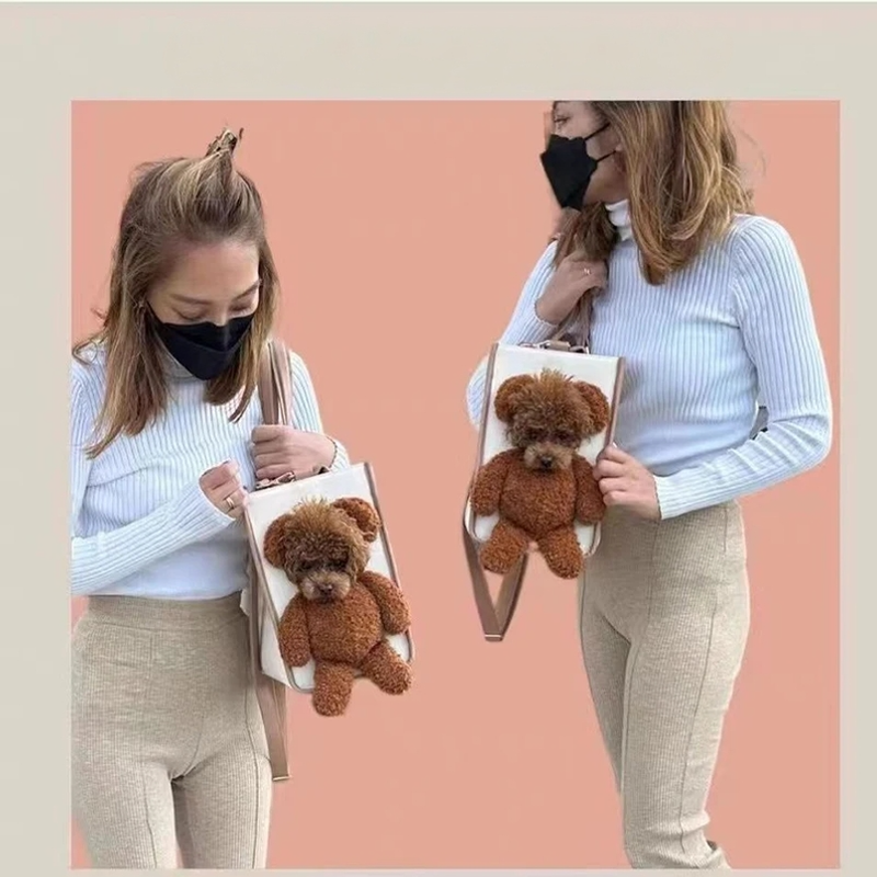 Pet carry bag Pet bag Creative fashionable handbag One-shoulder tilt straddle tote cat bag Small dog brown bear bag