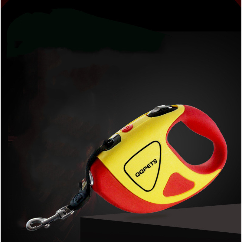 Pet Dog Automatic Retractable Fiber Leash Night Safety LED Shining Automatic Stretching Dog Hand Holding Rope Pet Supplies Yellow No logo 5m