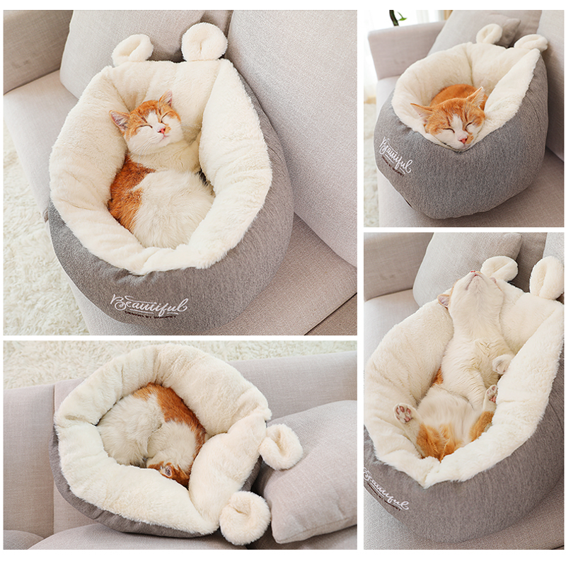 Pet Dog Bed Warming Soft Sleeping Bag Cushion Puppy Kennel Grey S