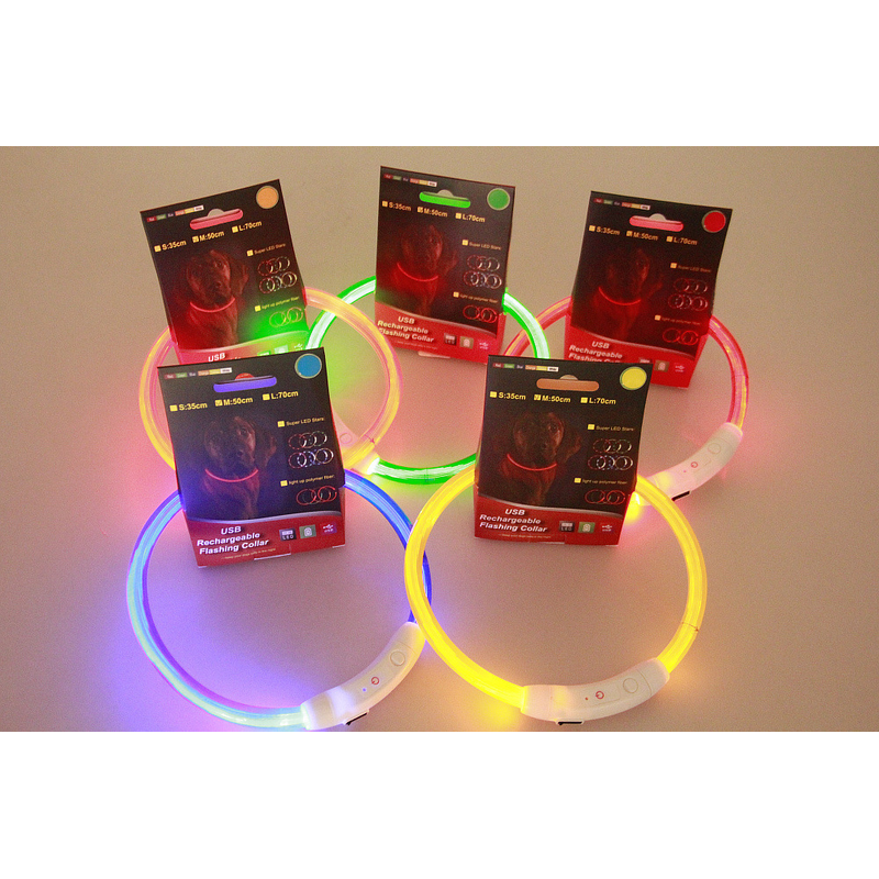 Pet Flashing Collar USB Rechargeable Glowing Necklace Safety Collar Light Up Collars For Night Walking Electric Dog Collar Neon Colorful Optical fiber 70cm