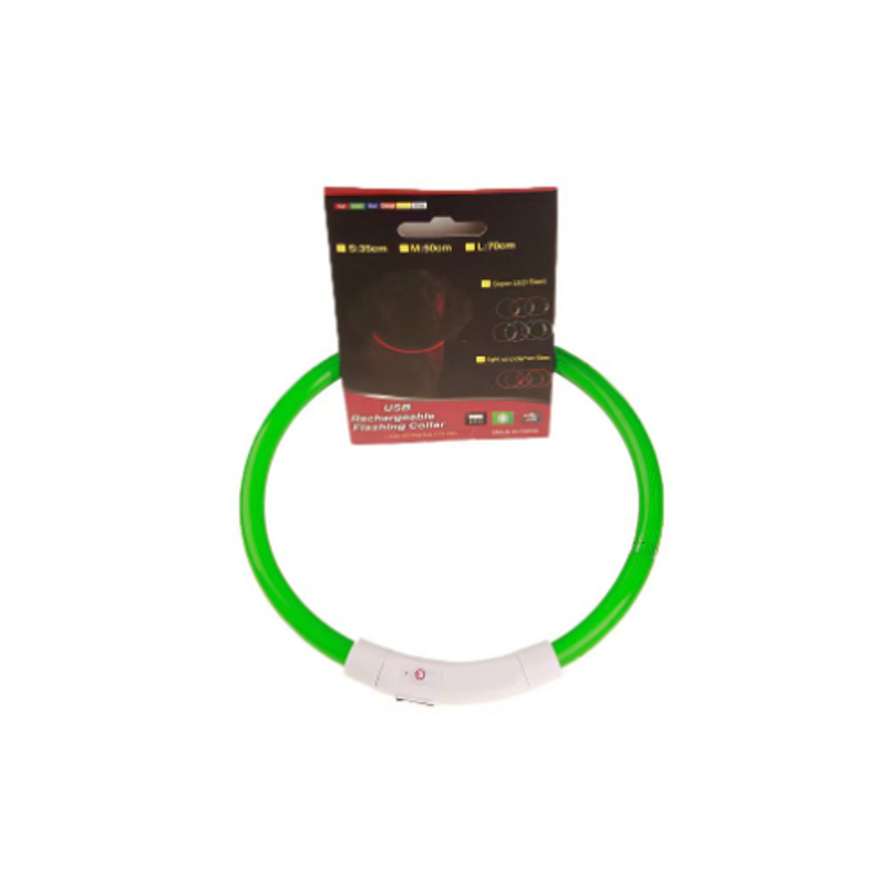 Pet Flashing Collar USB Rechargeable Glowing Necklace Safety Collar Light Up Collars For Night Walking Electric Dog Collar Neon Green Optical fiber 70cm