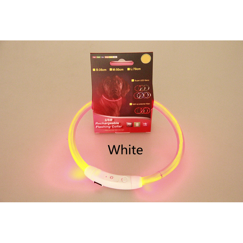 Pet Flashing Collar USB Rechargeable Glowing Necklace Safety Collar Light Up Collars For Night Walking Electric Dog Collar Neon White Optical fiber 50cm
