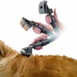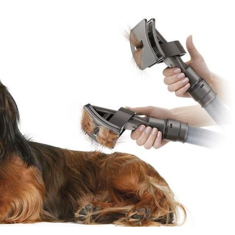 This grooming tool removes loose hair directly from your dog before it's shed around the home. Collected hair is then sucked straight into the vacuum. Mess-free vacuum-assisted dog grooming suction is split during grooming.
