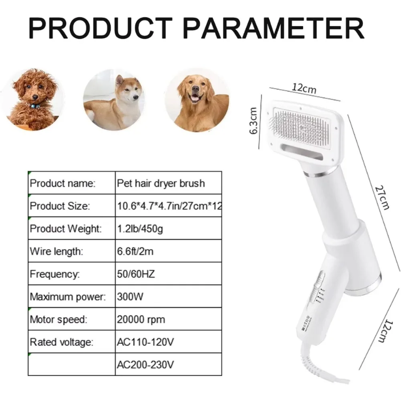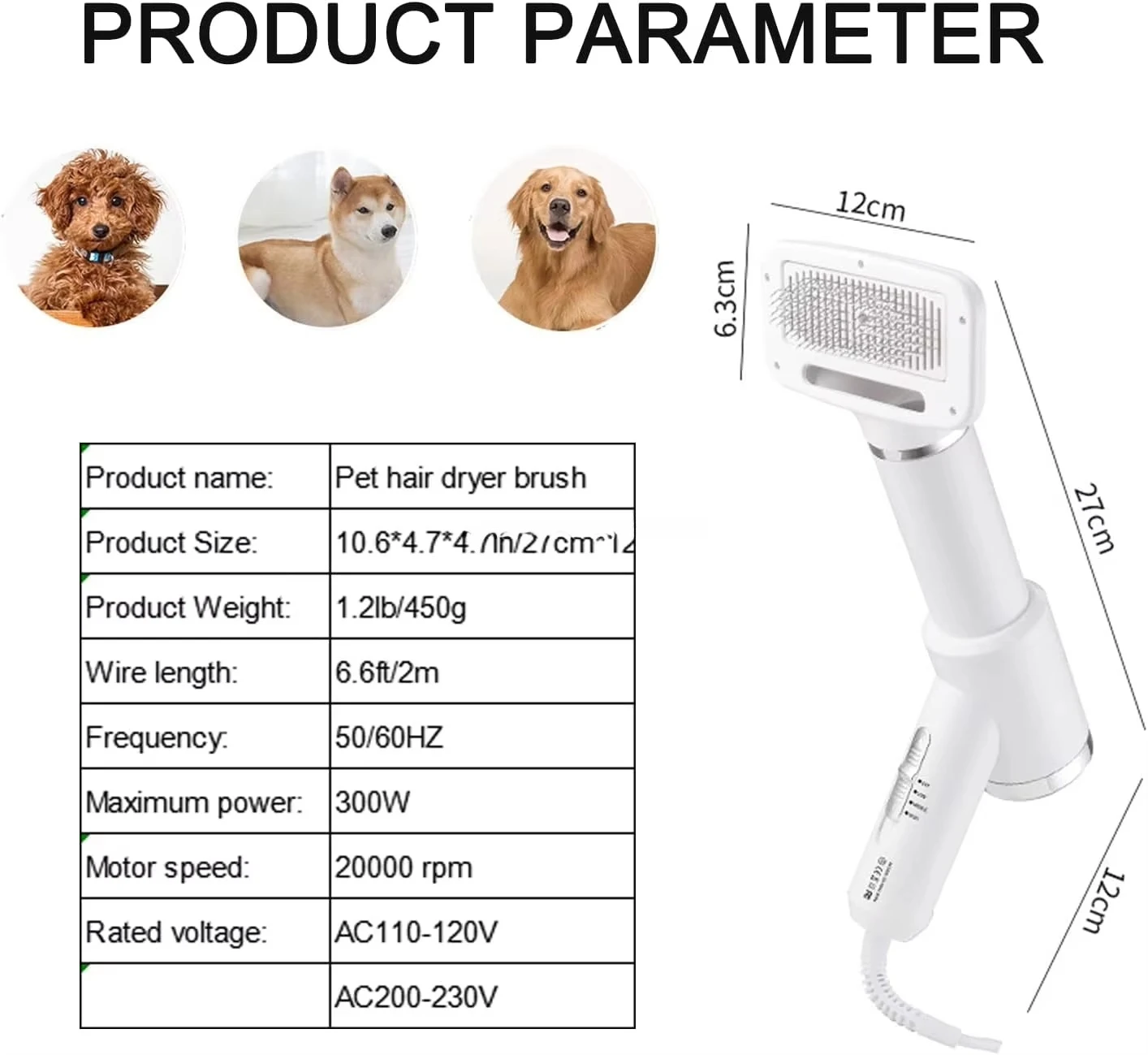 Pet Hair Dryer Cat Steam Brush Electric Portable Dog Blower Hot Air Hair Removal Comb Anti Static for Small Medium Dogs Cats