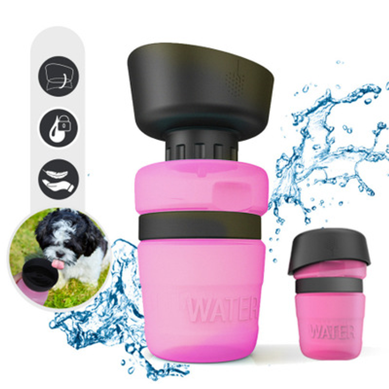 Pet Outdoor Foldable Bottle Dog Travel Water Bottle Dog Water Dispenser Rose Red 520ml