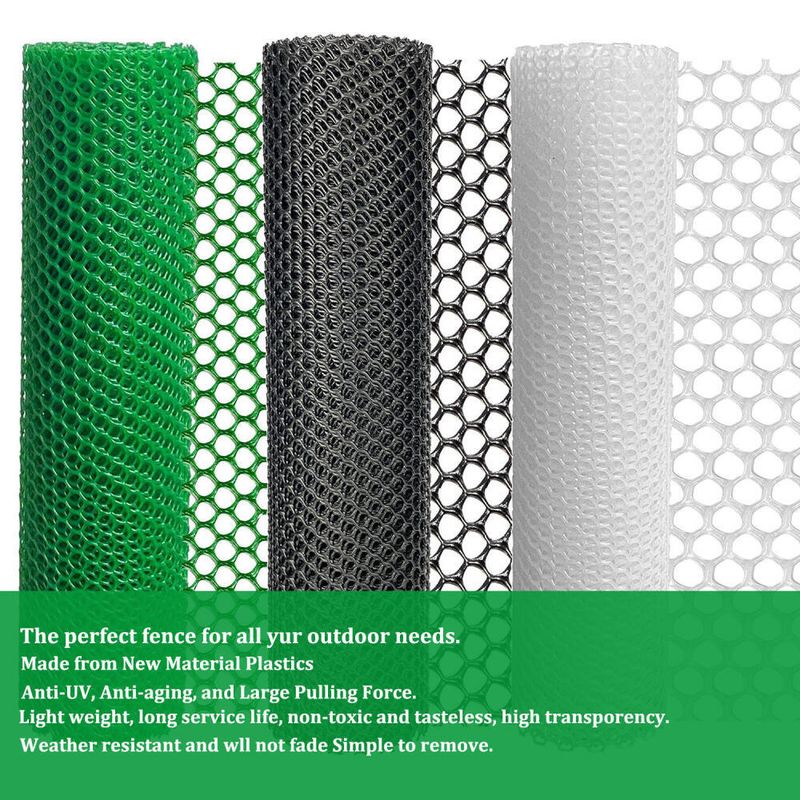 This lightweight poultry netting safety netting serves multiple functions. Suitable for chicken wire fence, poultry fence, garden fence, seedes lawn fence, building barrier, guard warning barrier, craft chicken wire frame, flower net, aquatic product maintenance, golf course protection. It's also ideal as a secondary fence for landscape renovations.
