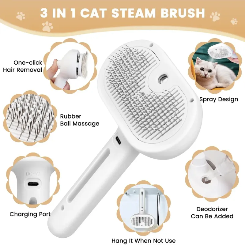 Title:Dog Cat Comb Self Cleaning Pets Hair Remover Brush for Dogs Grooming Tools Dematting Comb Built-in Mist Humidifier