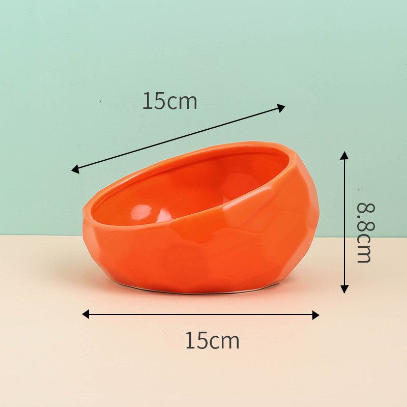 Pet Supplies Bowl Ceramic Cat Bowl Dog Bowl Oblique Mouth Red