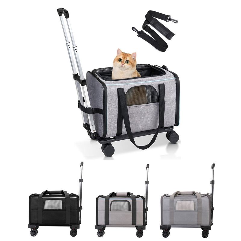 Pet Trolley Bag Detachable Rolling Carrier for Small Dogs Cats Portable Pet Travel Carrier with Telescopic Handle Shoulder Strap