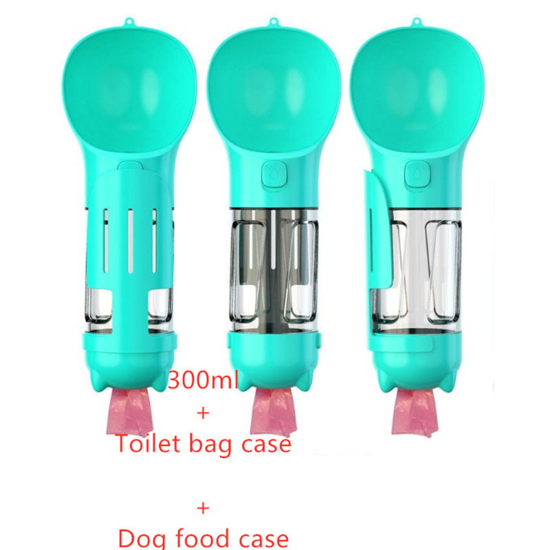 Pet Water Bottle Feeder Bowl Garbage Bag Storage Portable Pet Outdoor Travel 3 In 1 Dog Water Bottle Blue 300ml Set
