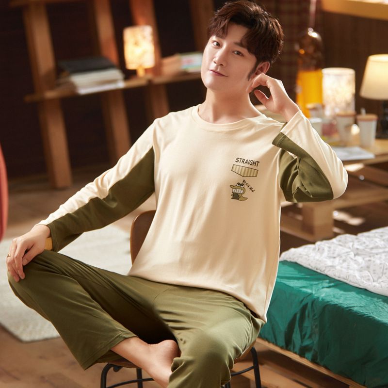 Peter Beauties Men'S Pyjamas Spring Autumn Korean Youth Pure Cotton Green L