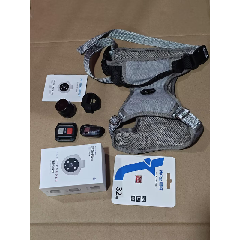 【A full set of accessories】1 x Pet's Perspective Recorder, 1 x protective shell, 1 x Remote control, 1 x Strap for recorder, 1 x Charging Cable, 1 x 4-in-1 Card Reader. The SD card is not included.