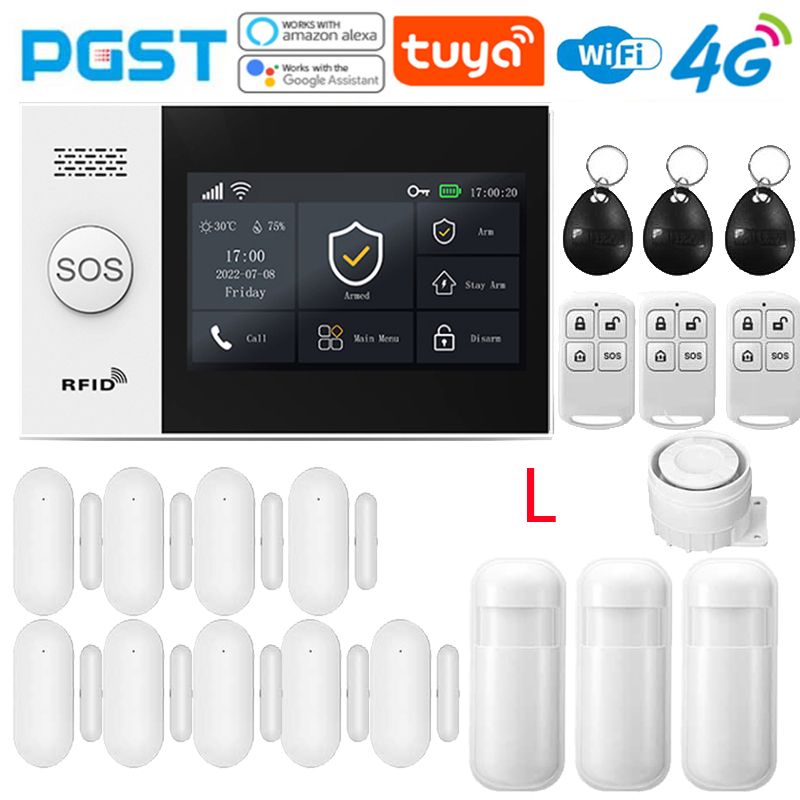 PGST107 4G Tuya smart home alarm, compatible with WIFI, Alexa and Google, and equipped with motion sensor security alarm system