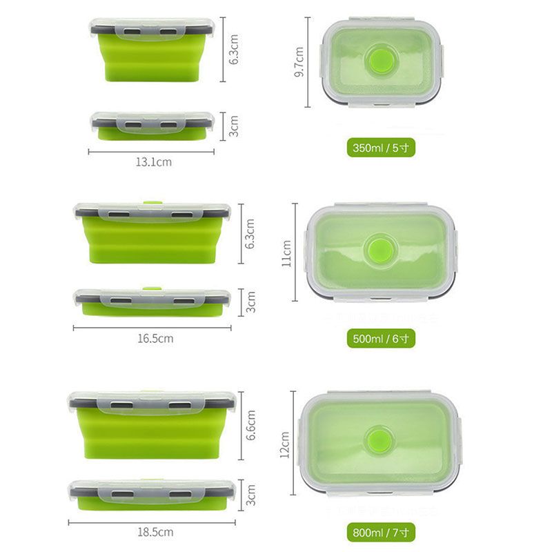 Silicone Collapsible Lunch Box Food Storage Container Bento BPA Free Microwavable Portable Picnic Camping Rectangle Outdoor Box
