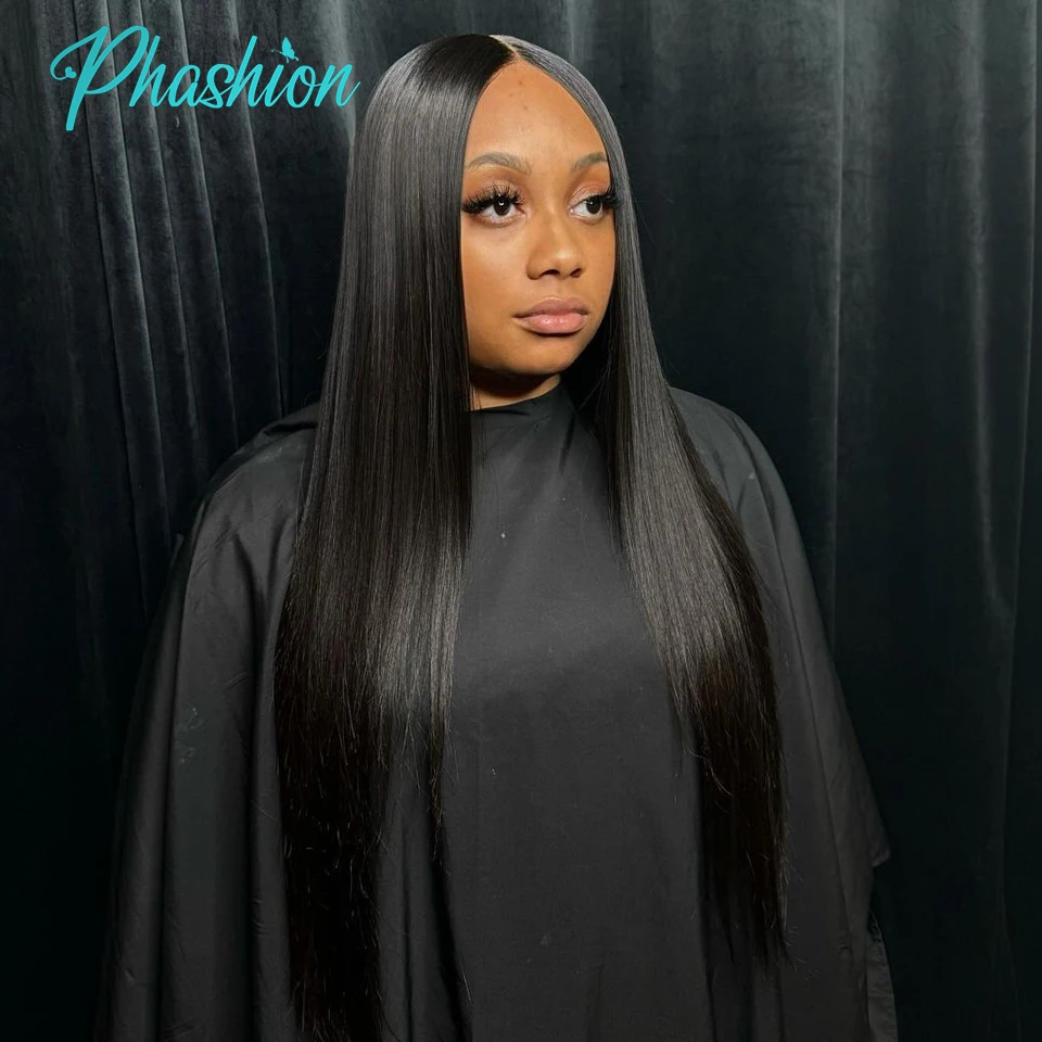 Phashion 24 26 Inch 5x5 4x4 Straight Lace Closure Only Pre Plucked Long Full Swiss Transparent Lace 100% Remy Human Hair On Sale